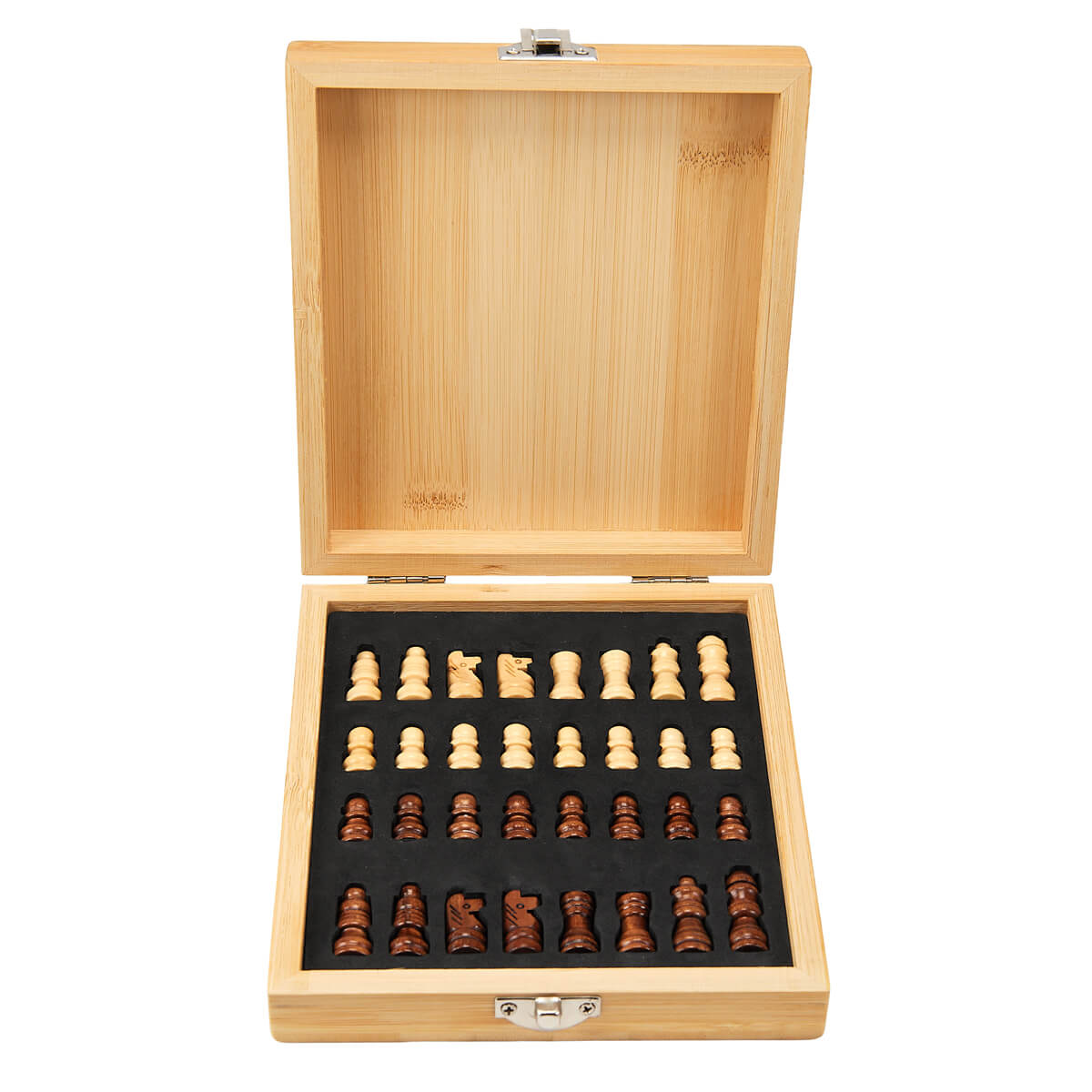 Fabricado en bambú, ideal para los amantes del juego estratégico que valoran la practicidad y el diseño. Incluye 32 piezas en dos tonos de madera (oscuro y claro), perfectamente proporcionadas y almacenables dentro de su propio estuche. El tablero está impreso directamente sobre la tapa del estuche, lo que permite jugar cómodamente y guardar todo con facilidad. Su broche metálico garantiza seguridad durante el transporte. La madera es un producto natural el cual puede presentar variaciones en tonalidades y vetas. Incluye caja Individual.