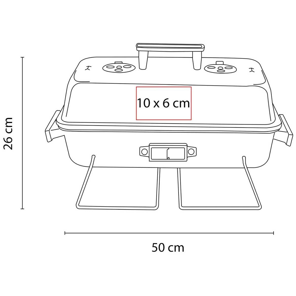 Asador portátil de carbón. Incluye parrilla y tapa con difusor de temperatura. Base con asas. Este producto por ser últimas piezas puede presentar alguna variación, no se aceptan devoluciones.