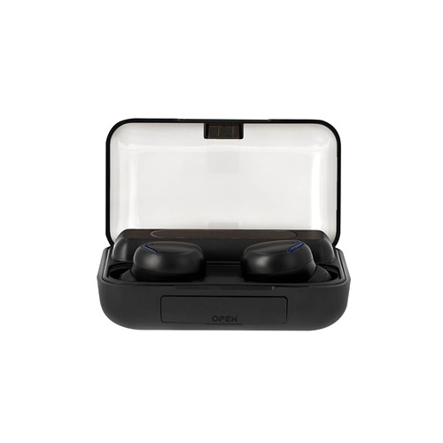 Audífonos bluetooth inalámbricos con power bank de 1,500 mAh. Función manos libres. Rango de conexión 10 metros. Reproducción de música 5 hrs aproximadamente. Incluye cable cargador USB, 4 repuestos de goma y estuche para recargar los audífonos con pantalla digital que indica el nivel de carga del power bank y los audífonos.