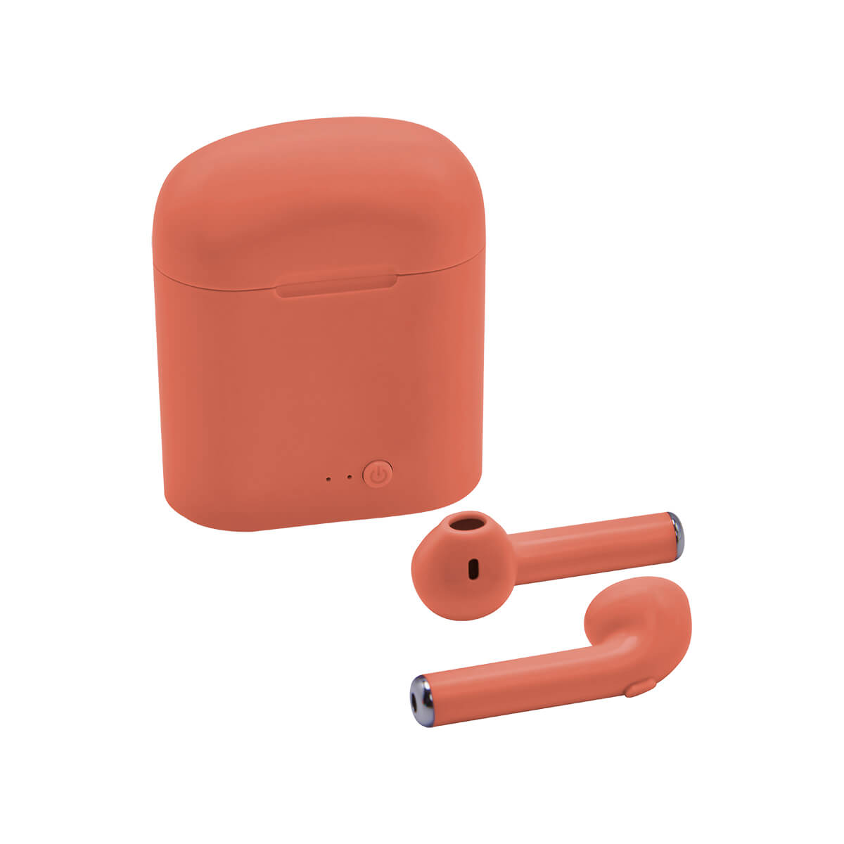 Audífonos bluetooth inalámbricos con batería recargable. Función manos libres. Reproducción de música 2 hrs aproximadamente. Incluye estuche para recargar los audífonos y cable cargador USB.
