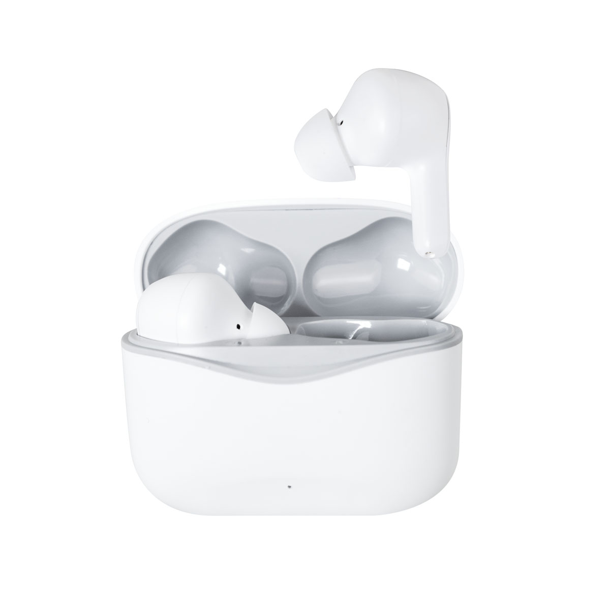 Audífonos bluetooth con base recargable. Controles integrados touch para llamadas, volumen y reproducción de audio. Reproducción de música 3 a 4 hrs aproximadamente. Rango de conexión de 10 metros. Incluye estuche de carga y cable cargador USB. Este producto por ser últimas piezas puede presentar alguna variación, no se aceptan devoluciones.