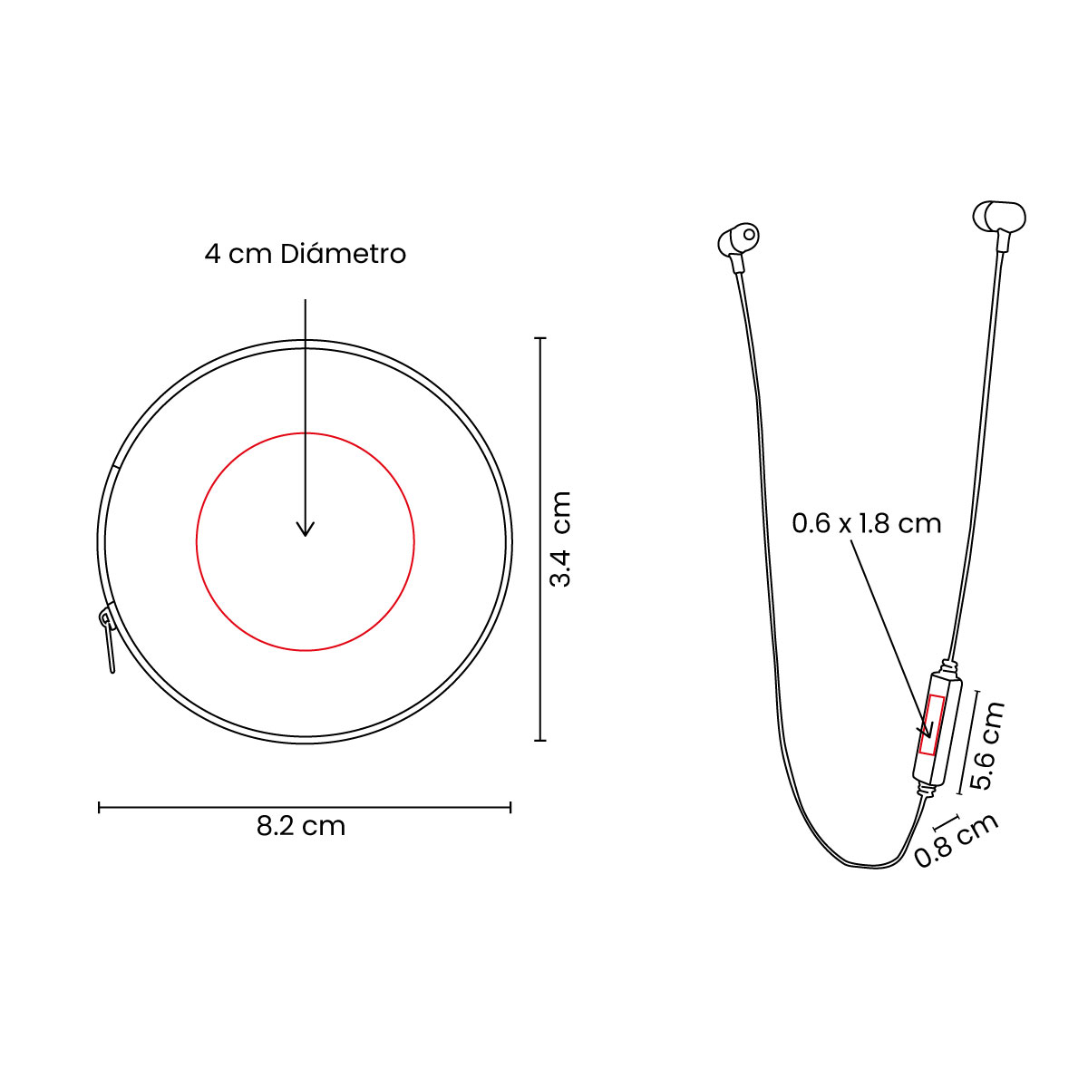 4 cm Diámetro Estuche / 0.6 x 2.8 cm Control de Audífonos