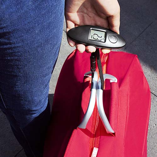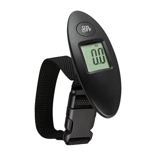 Display digital. Capacidad máxima 40 kg. Incluye correa y 1 batería de botón. Unidades de peso: kg y lb.
