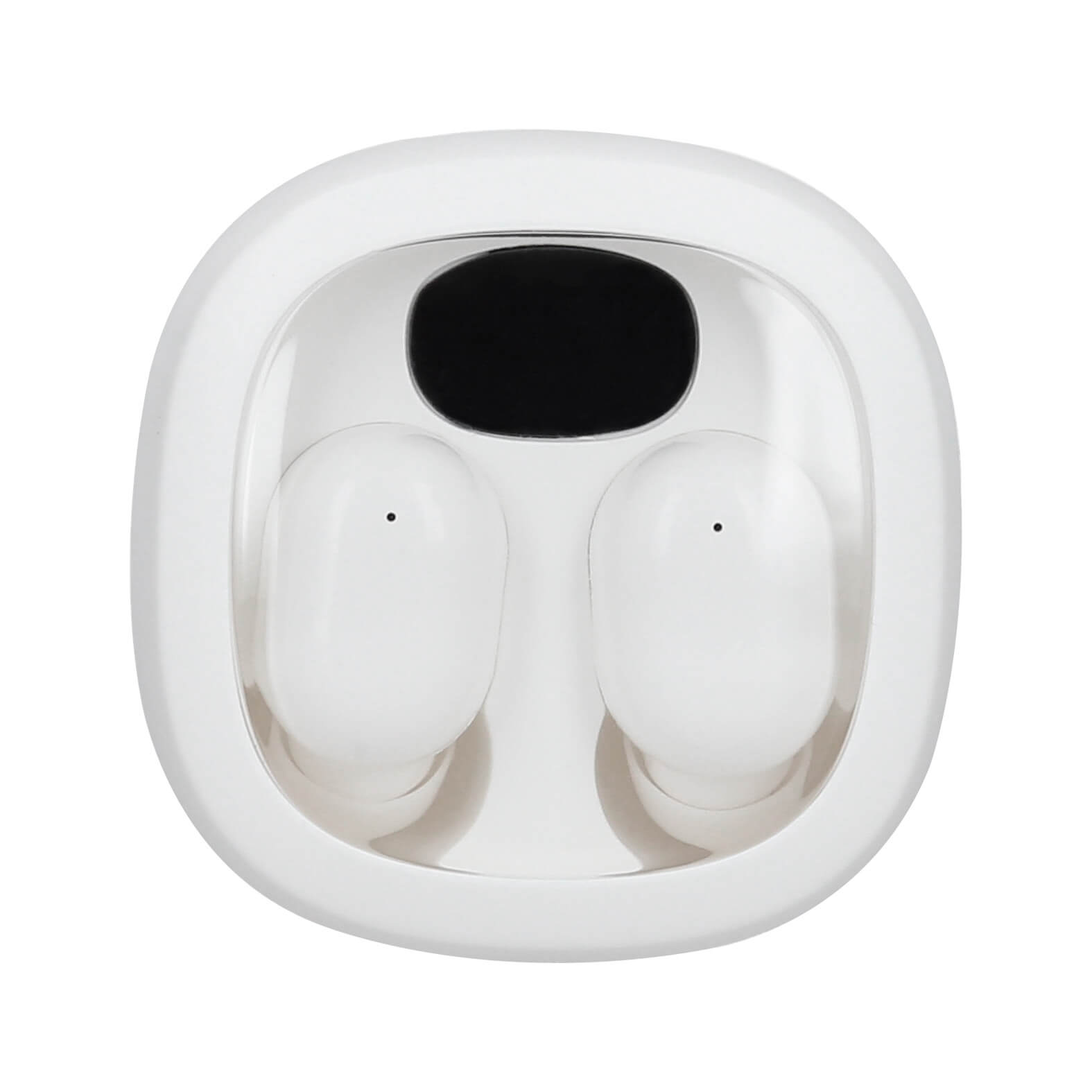 Audífonos inalámbricos con estuche recargable que indica el nivel de carga y mecanismo touch. Incluye cable tipo C.