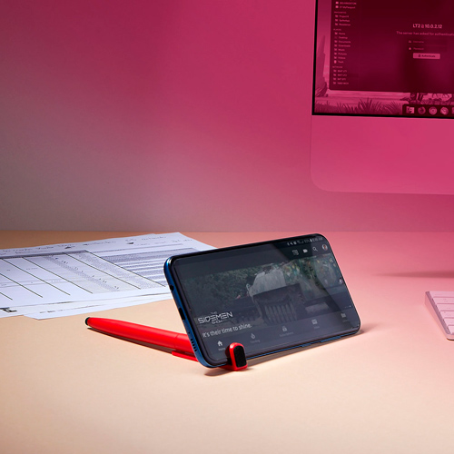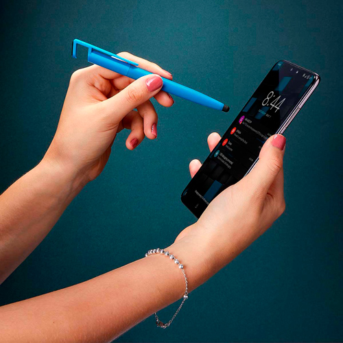 Bolígrafo con touch screen, base para smartphone y limpiador de pantalla. Mecanismo twist.