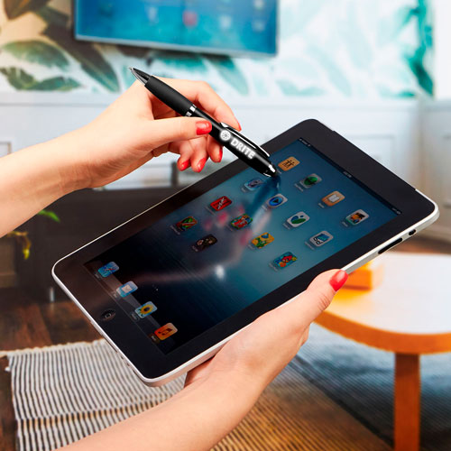 Bolígrafo con luz LED y touch screen. Mecanismo twist. Al grabar y girar, el logotipo se ilumina.