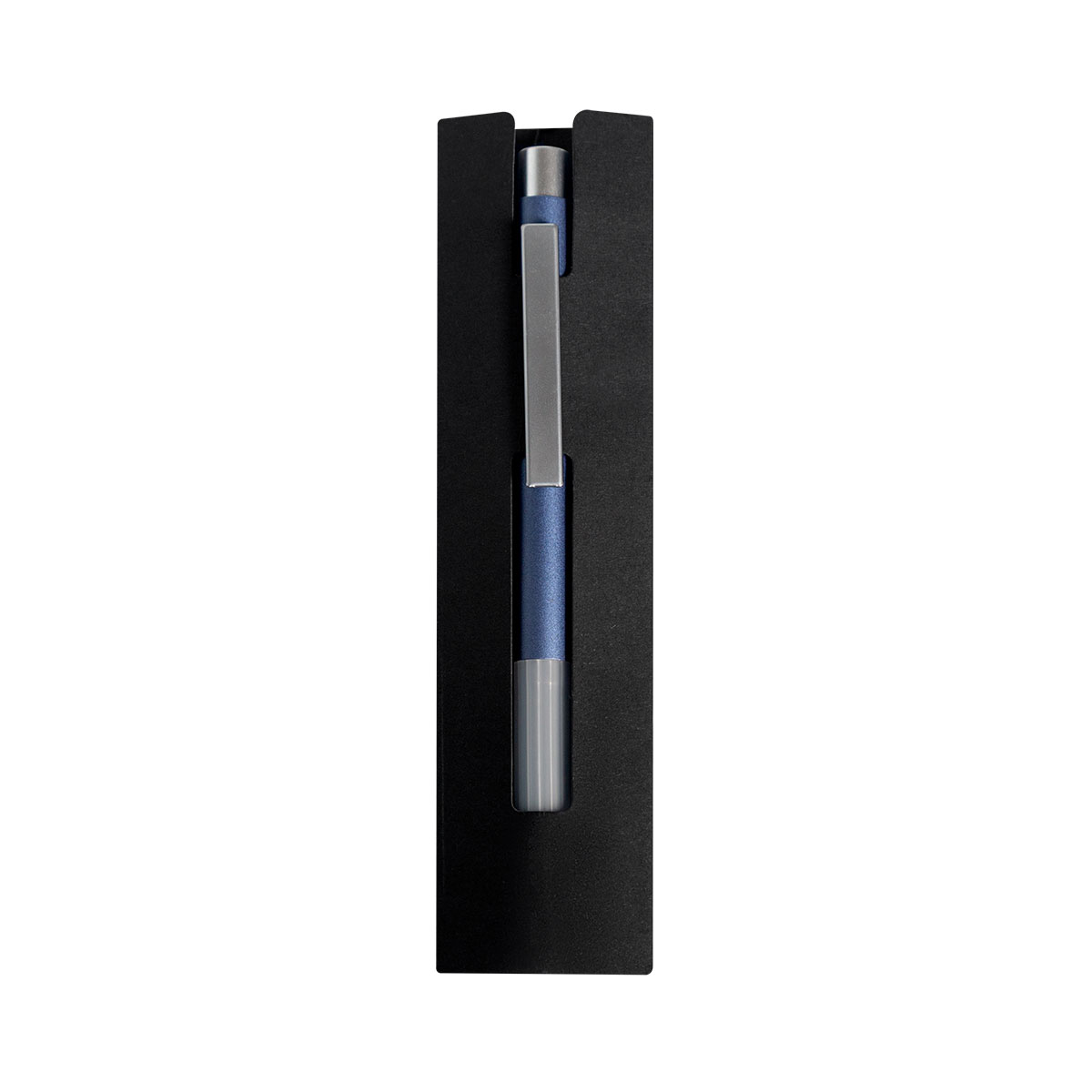 Bolígrafo con grip antiderrapante. Mecanismo pulsador. Incluye funda.