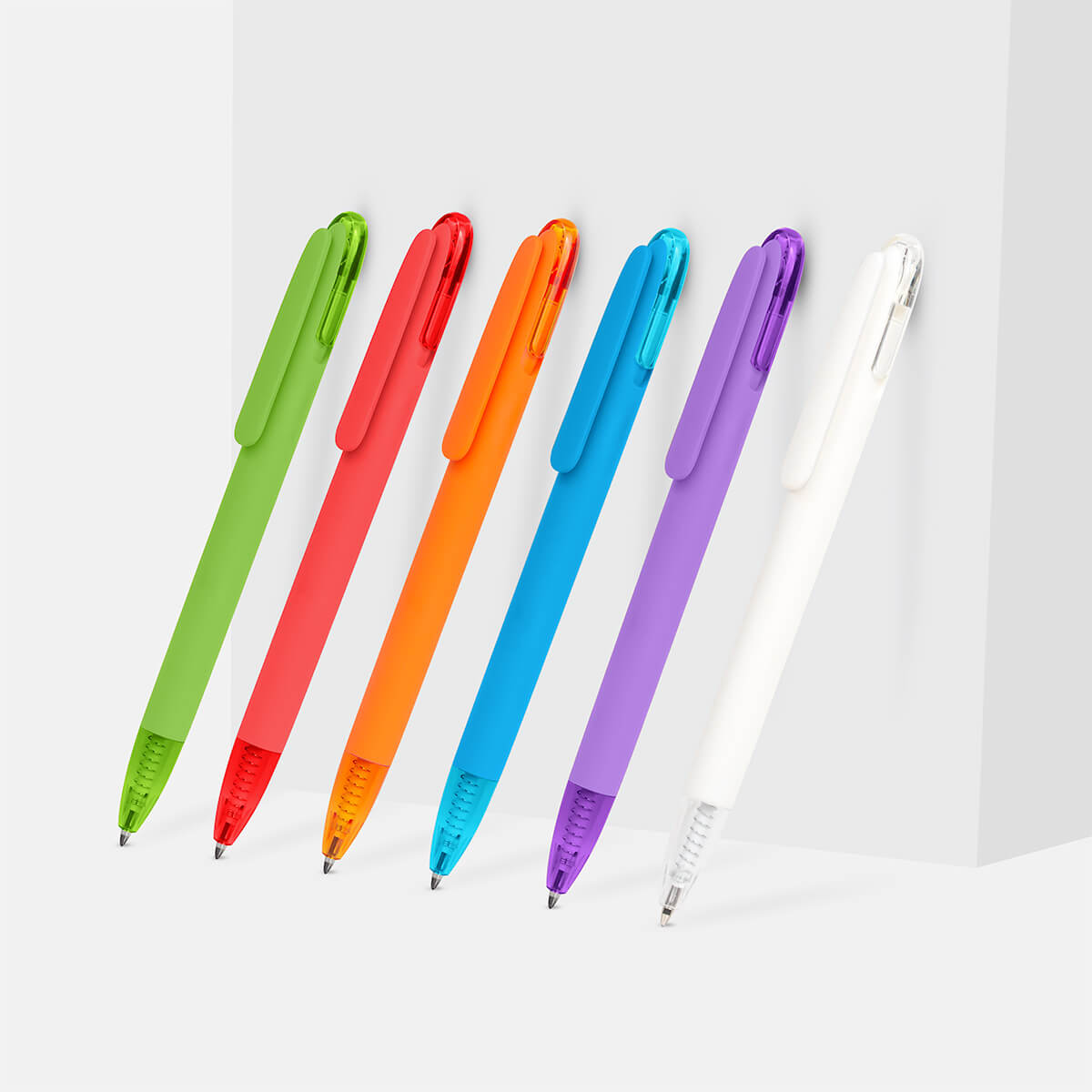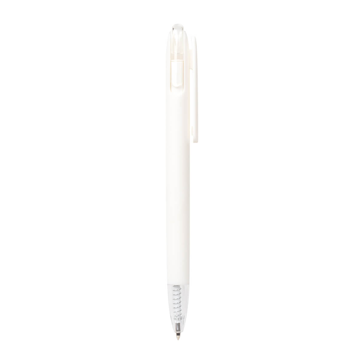 Bolígrafo de plástico con terminado rubber. Su contraste de material solido y translucido aportan un toque único a su diseño. Mecanismo pulsador.