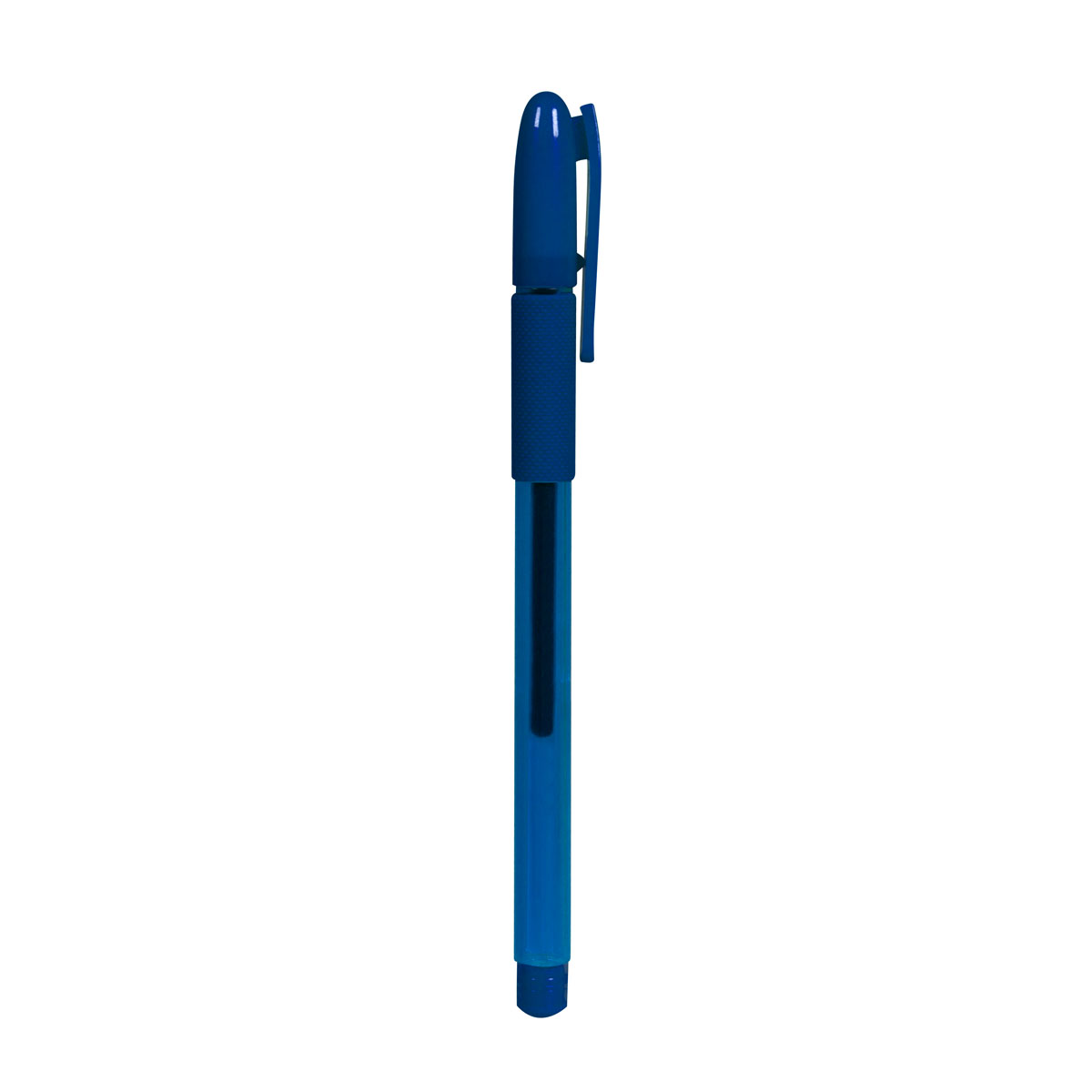 Bolígrafo con tapón y grip antiderrapante.