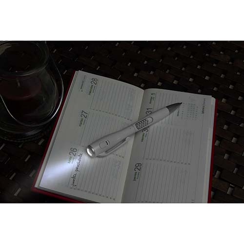 Bolígrafo con lámpara de 1 LED. Mecanismo twist. Incluye batería.