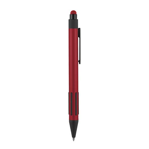 Bolígrafo con touch screen y grip antiderrapante. Mecanismo pulsador. Incluye funda.