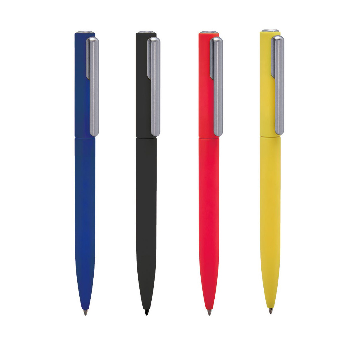 Bolígrafo con terminado rubber y clip metalizado. Mecanismo twist.