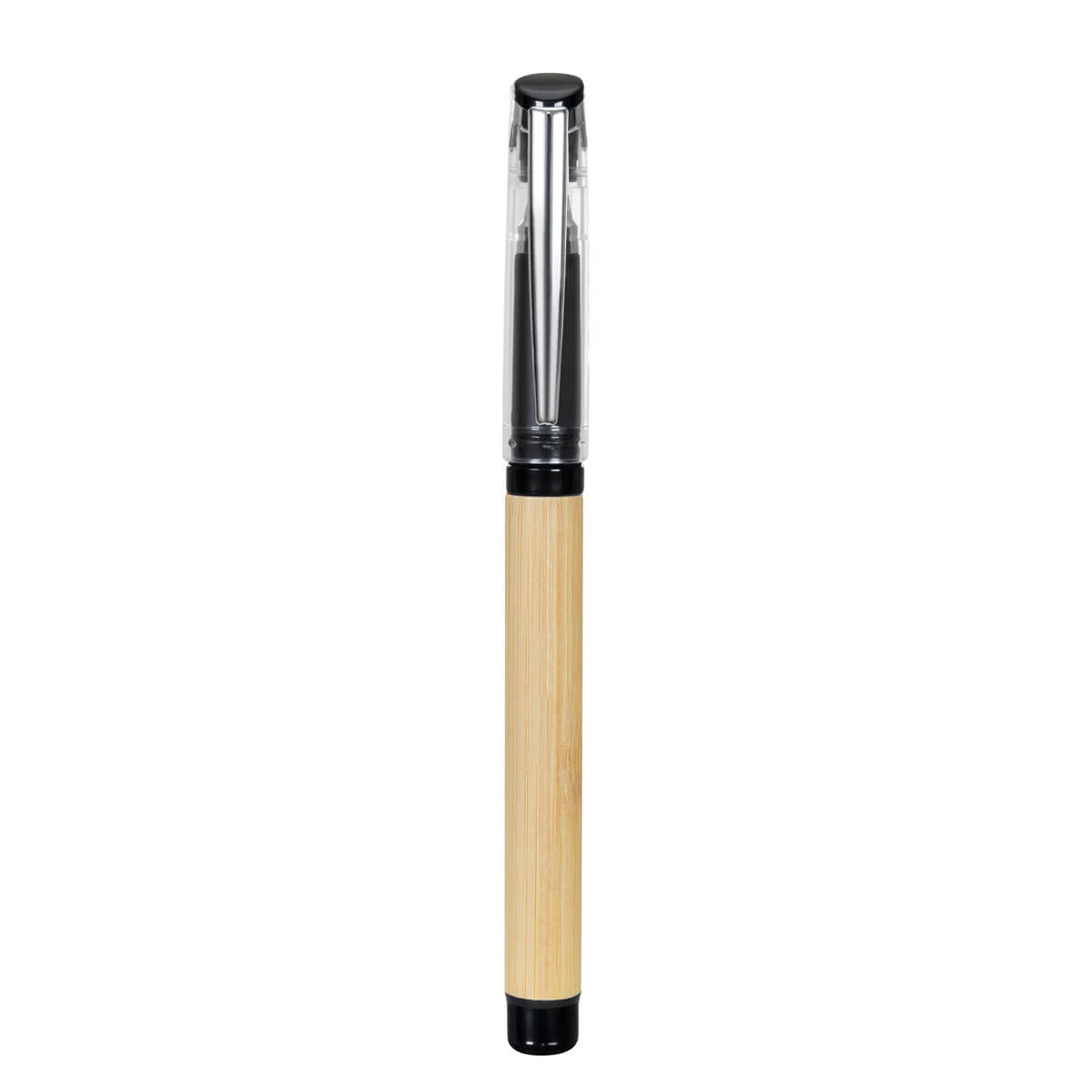 Bolígrafo de bambú con tapón. Grip antiderrapante. Tinta gel. Incluye funda.