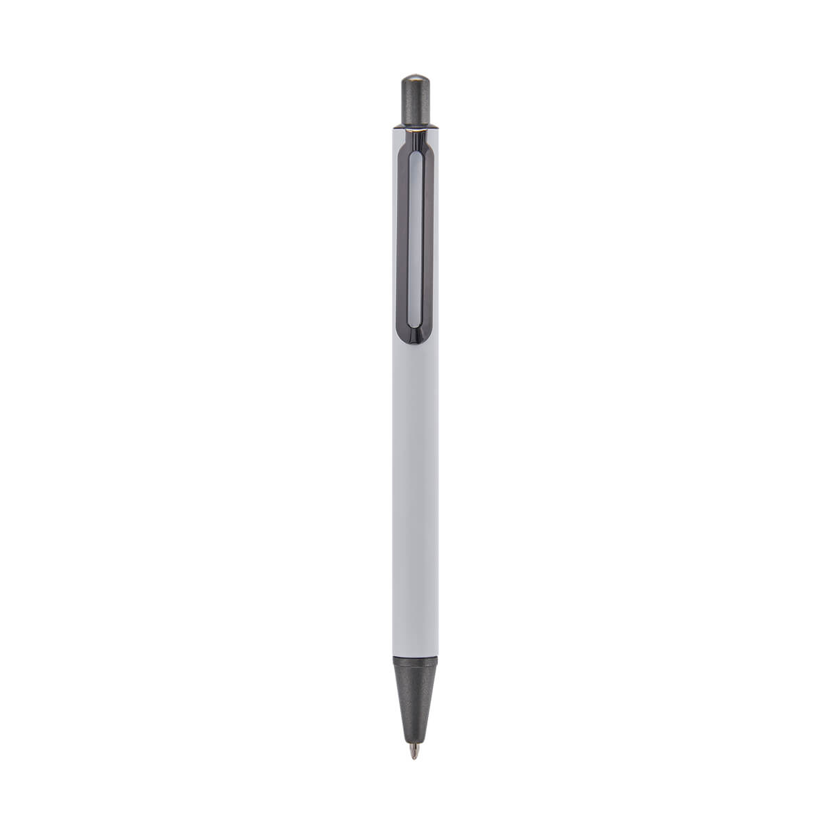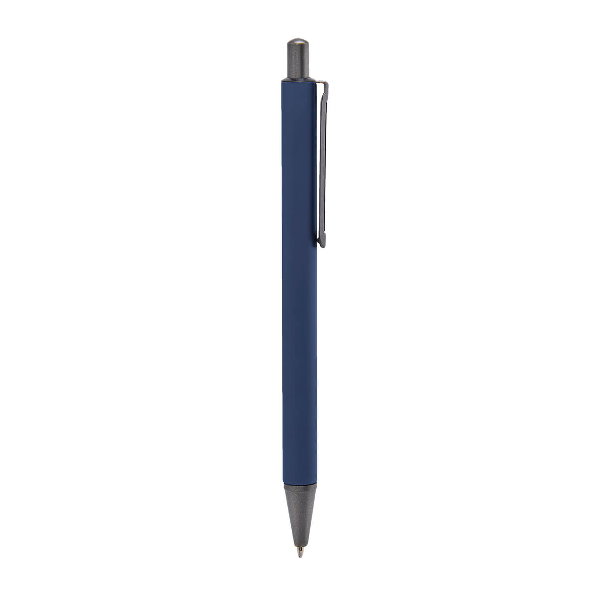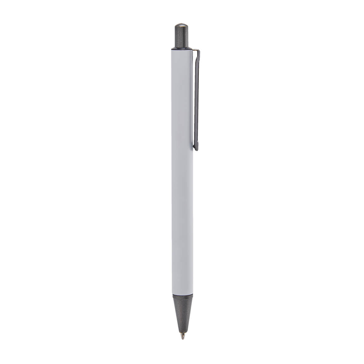 Bolígrafo metálico con terminado mate y clip suajado. Mecanismo pulsador. Incluye funda.