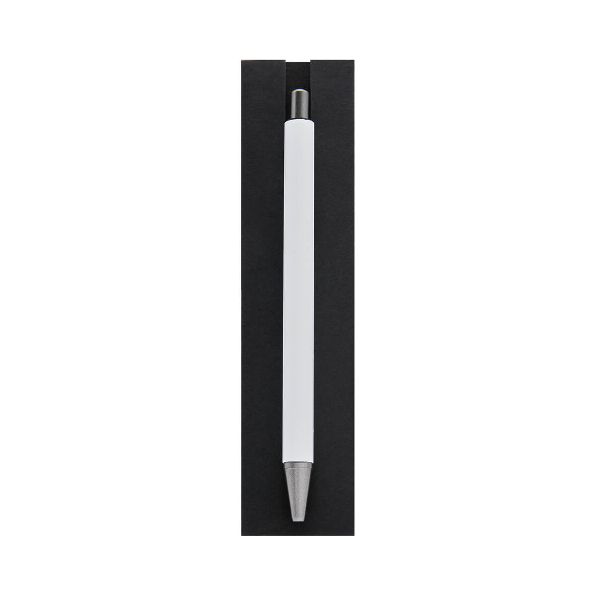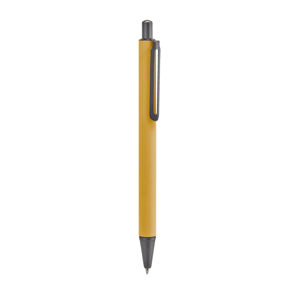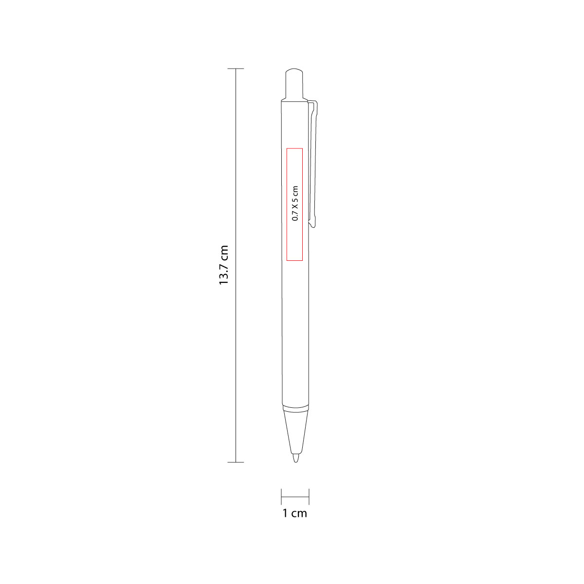 Bolígrafo metálico con terminado mate y clip suajado. Mecanismo pulsador. Incluye funda.