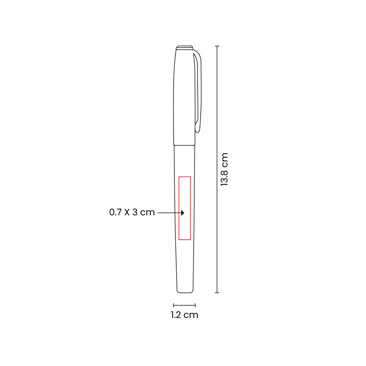 Bolígrafo metálico con tapón. Cuerpo en color gris y el tapón en color gun. Incluye estuche.