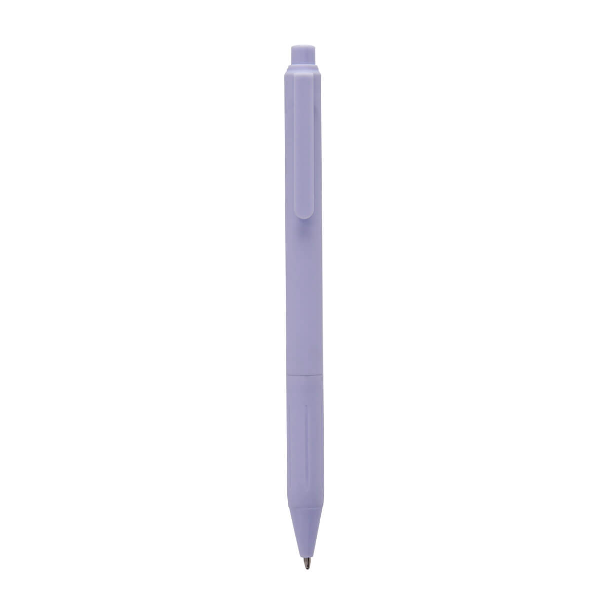 Bolígrafo en colores pastel. Grip de silicón antiderrapante. Mecanismo pulsador.