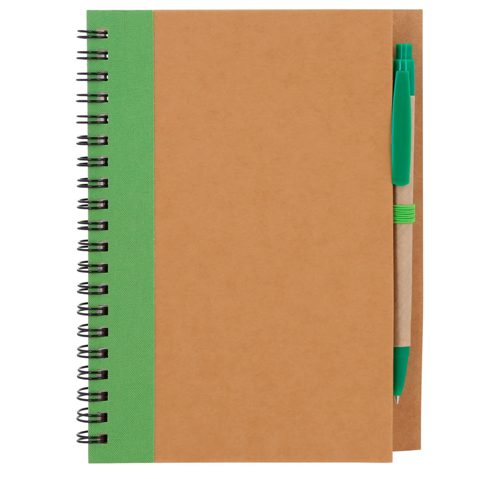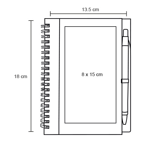 Libreta de papel reciclado con bolígrafo, incluye: 70 hojas rayadas.