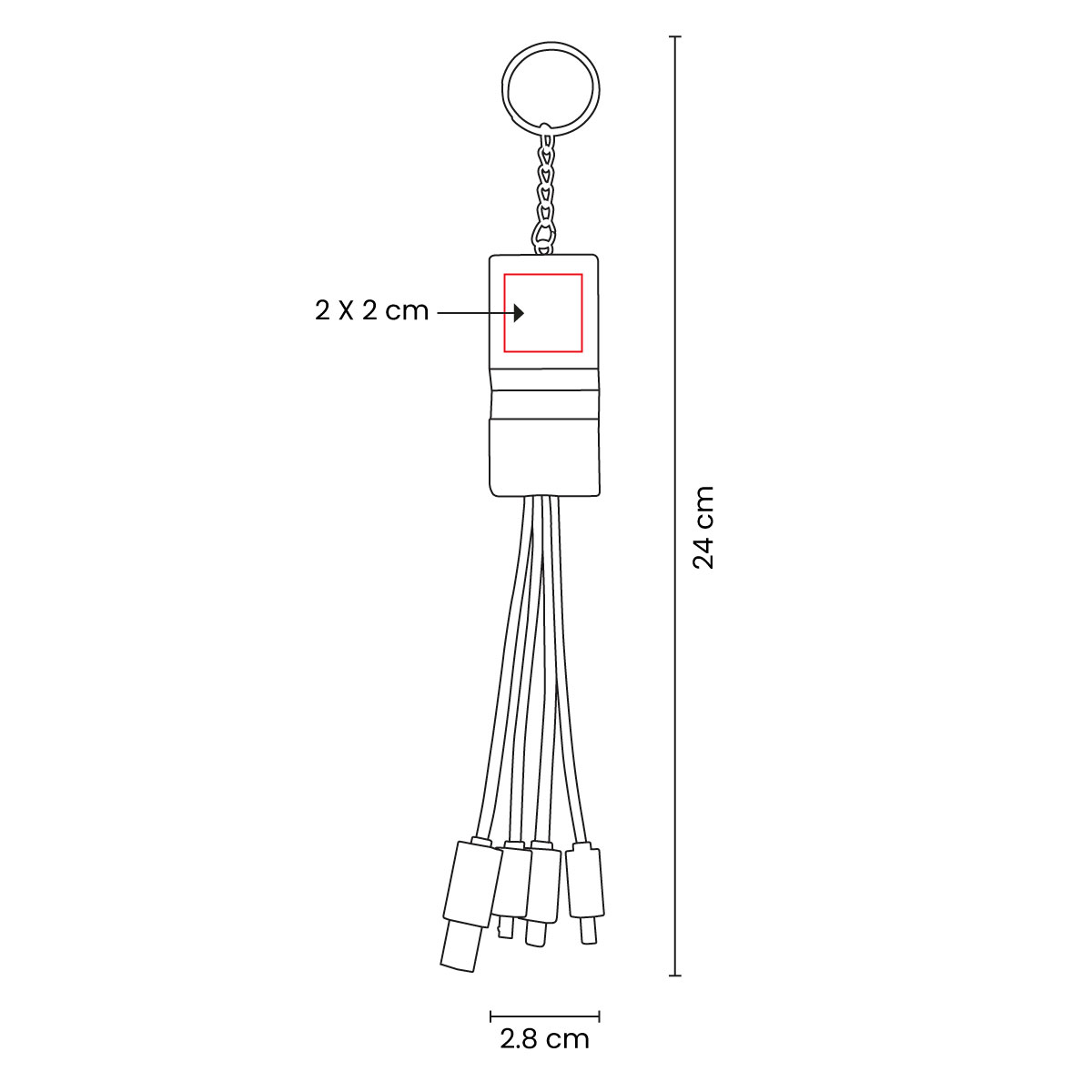 Cable cargador con llavero y soporte para smartphone de bambú. Compatible con USB, micro USB, tipo C y lightning (8 pines). Salida de 2A. No permite transferencia de datos. El bambú es un producto natural el cual puede presentar variaciones en tonalidades y vetas.