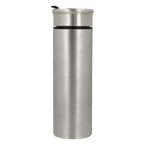 Termo de doble pared con interior de plástico y tapa enroscable a presión.