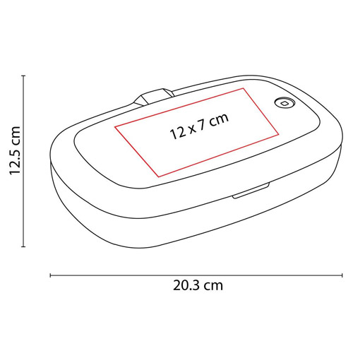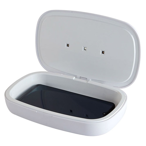 Caja con luz UV sanitizadora para celular y otros artículos. Función carga inalámbrica en cubierta. Se necesita estar conectado para la carga. Incluye cable USB para fuente alimentadora. No abrir tapa en funcionamiento para no reflejar la luz UV directo a tu cara o piel.