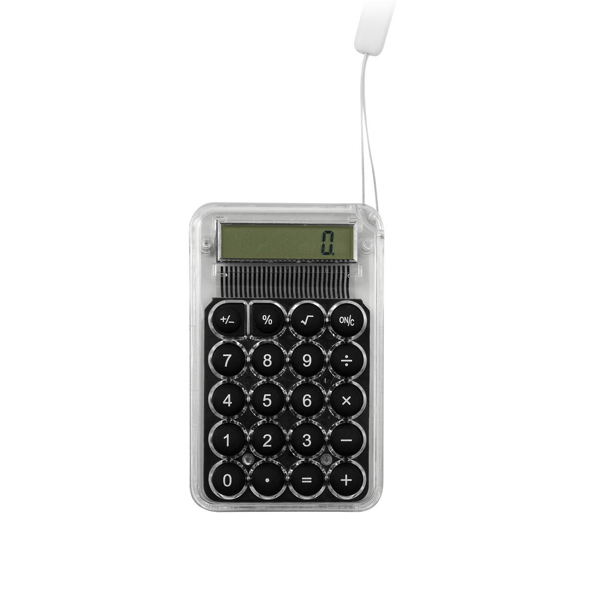 Calculadora de 8 dígitos. Ideal para funciones básicas. Incluye cordón de 40 cm. Batería de botón incluida.