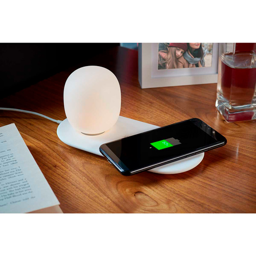 Cargador inalámbrico para smartphone con lámpara de escritorio. Compatible con la mayoría de dispositivos comerciales que cuenten con tecnología de carga inalámbrica. Potencia de carga de 5W. Incluye cable cargador.