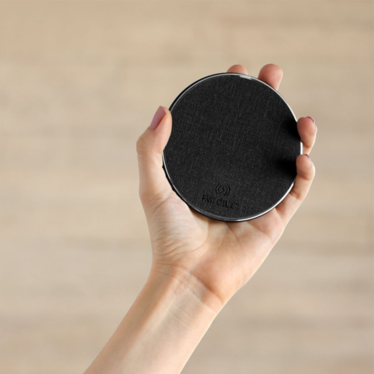 Cargador inalámbrico «fast charge». Velocidad de carga: 5W / 7.5W / 10W / 15W. Se enciende luz color verde cuando está en reposo y luz color azul cuando está en proceso de carga. Incluye cable auxiliar tipo C y caja individual.