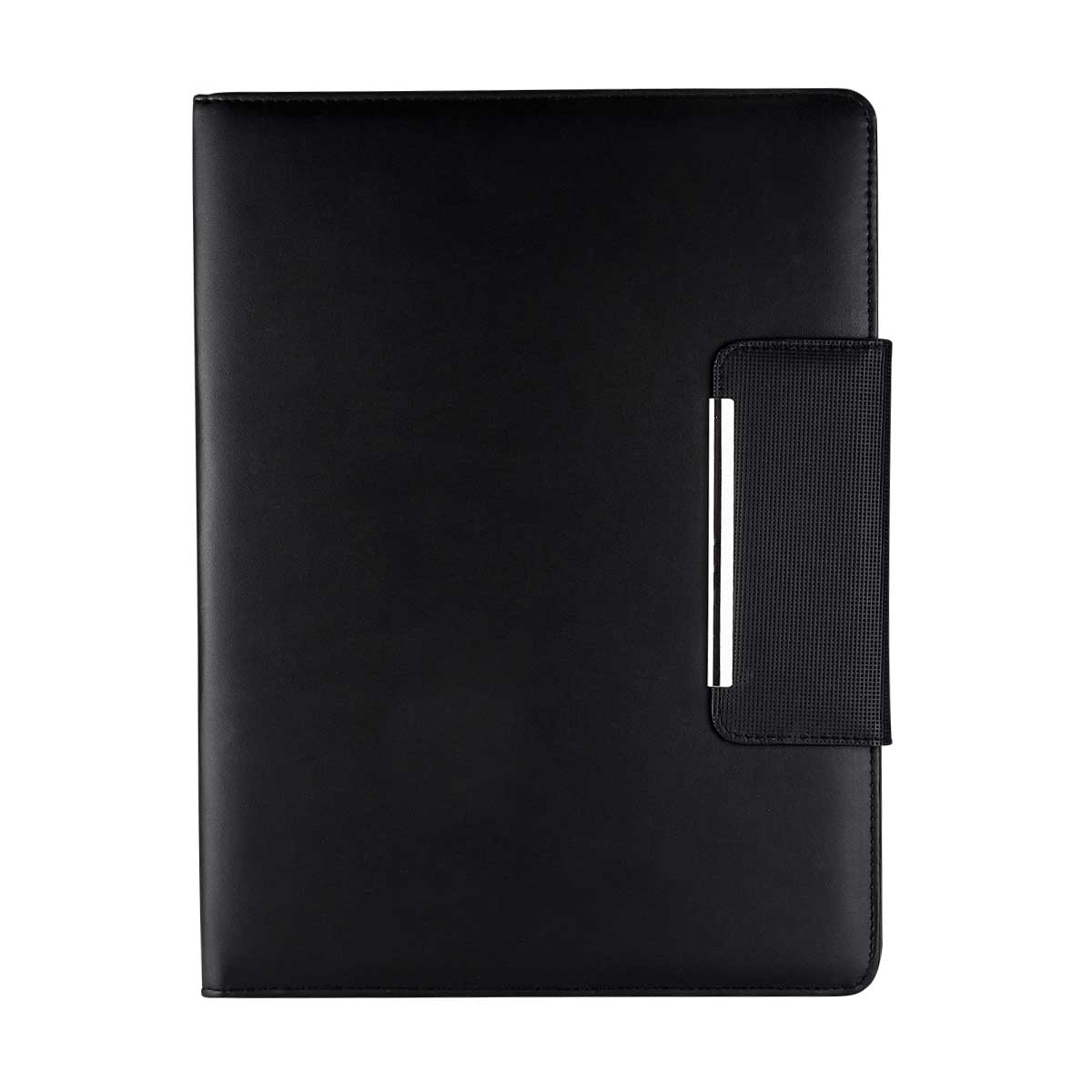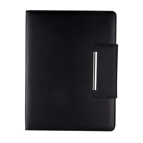 Incluye block de raya tamaño A4 con 20 hojas, elástico para bolígrafo, broche magnético, compartimento para documentos y tarjetas. No incluye bolígrafo.