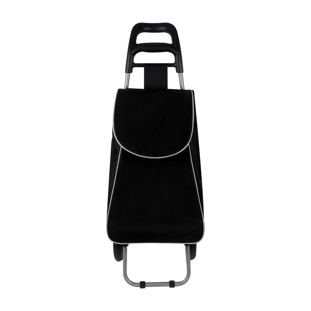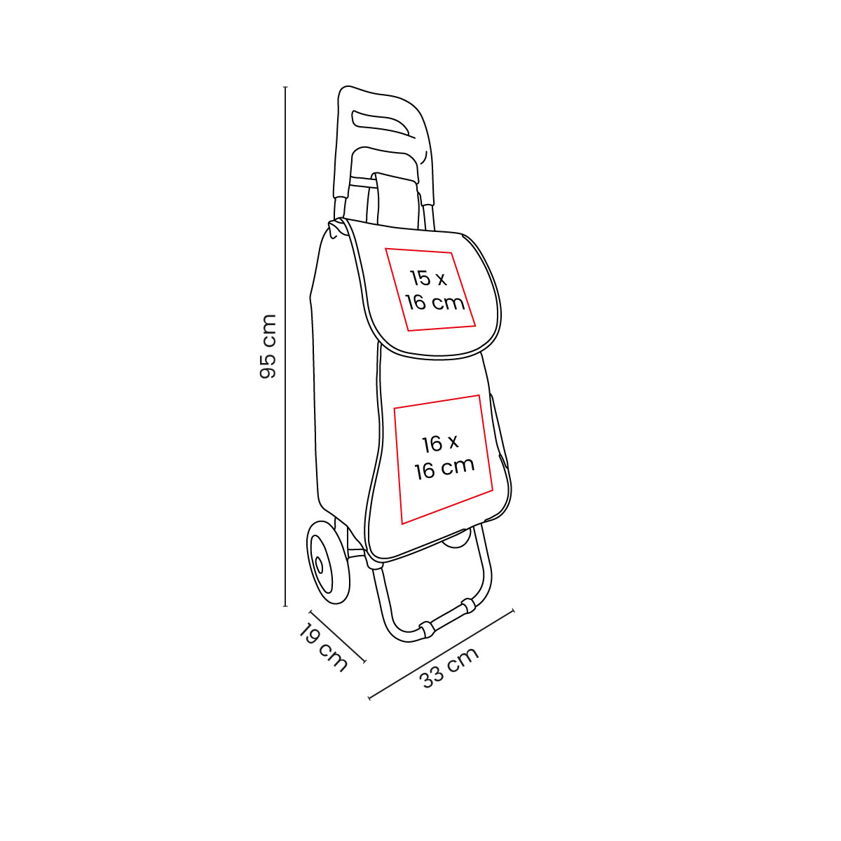 Bolsa para supermercado con jareta y solapa. Incluye bolsa posterior con cierre, estructura de metal, base para sostenerse, agarradera y llantas de plástico. Bolsa desmontable con velcro en la parte posterior. Ideal para las compras de fin de semana.