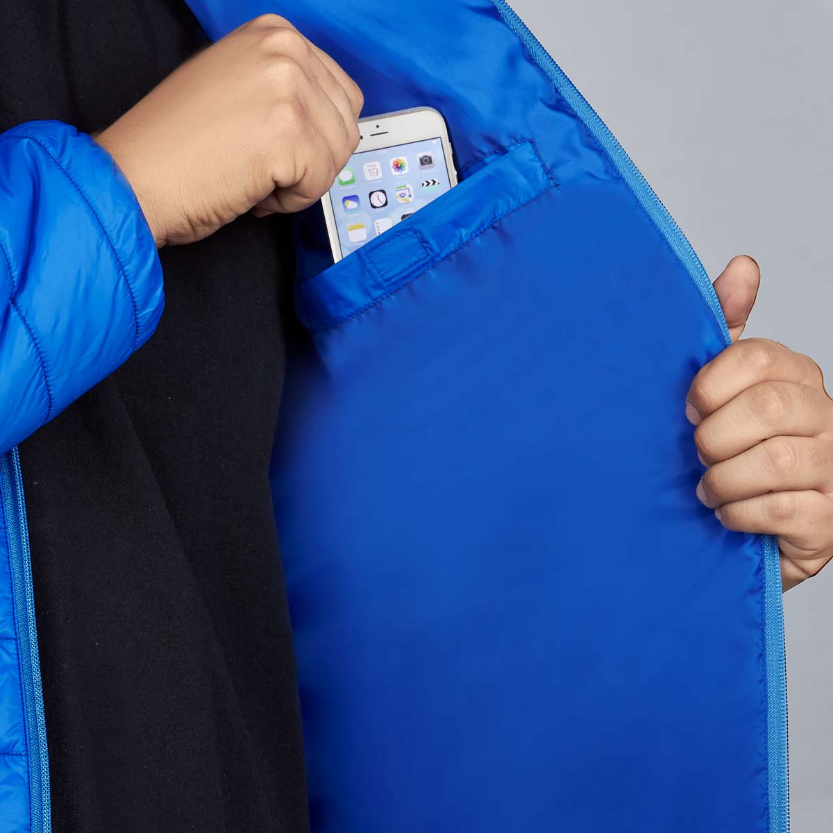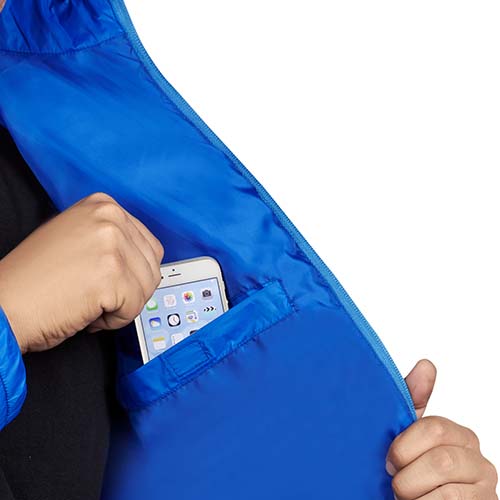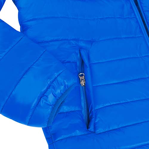 Chamarra con bolsas laterales y bolsas al interior. Exterior 100% nylon. Interior y relleno 100% poliéster.