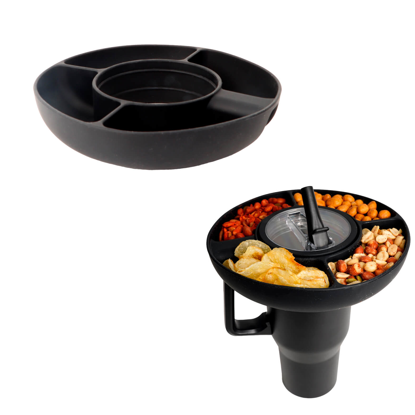 Tazón de botanas para termo con asa de 4 compartimentos. (No incluye termo).