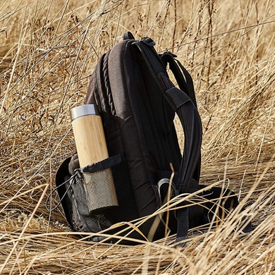 Material: Acero inoxidable con aplicacion exterior de bamboo