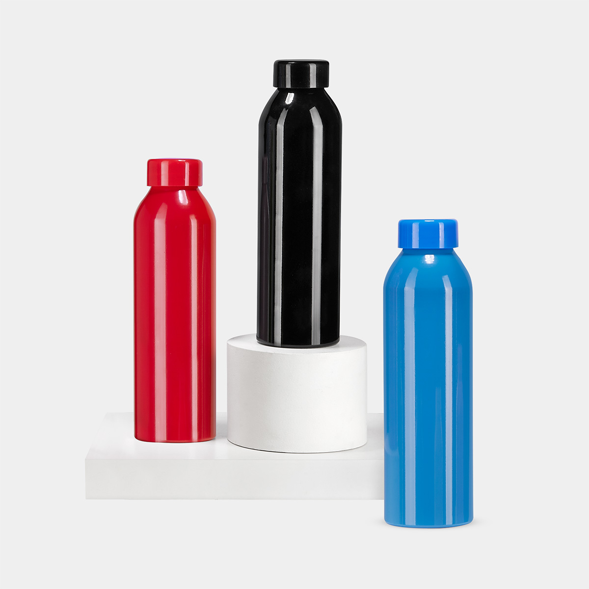 Cilindro metálico de una pared y tapa de plástico con cierre de rosca. Incluye caja individual.