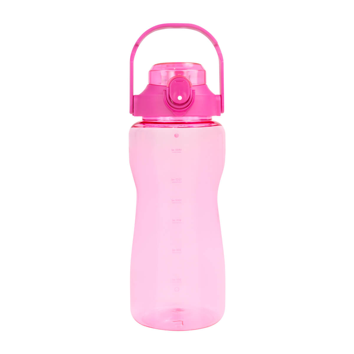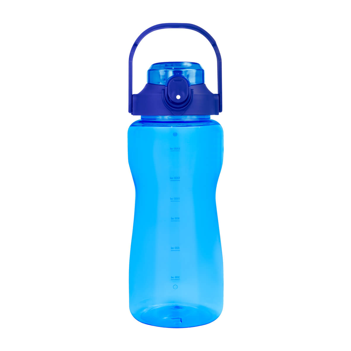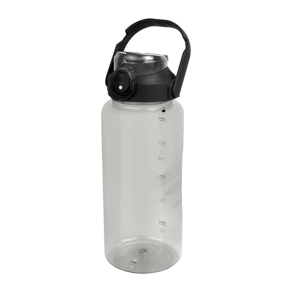 Tapa de plástico con cierre de rosca y boquilla, sobretapa push con botón de seguridad y asa plegable con phone holder para colocar el celular. Cuerpo traslúcido, resaques laterales para un mejor agarre, indicador de mililitros para motivar y controlar tus hábitos de hidratación. Incluye caja individual.