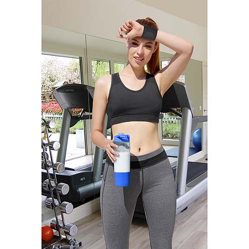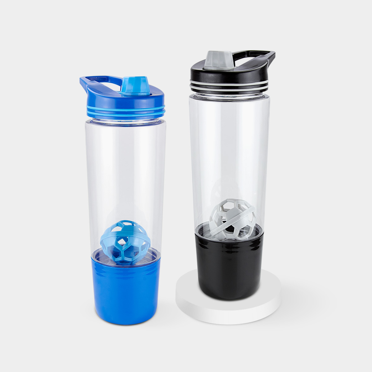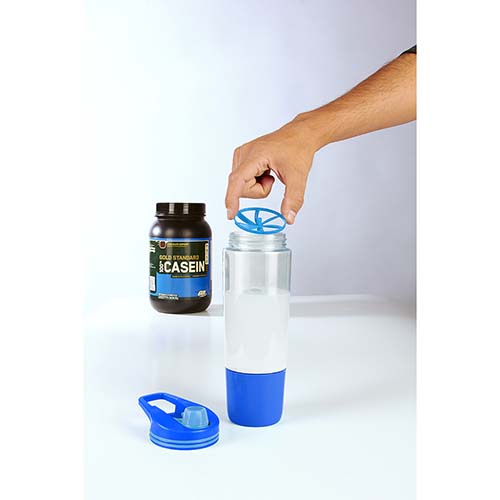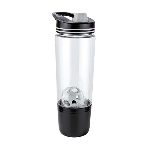 Tapa de rosca con boquilla y asa. Cuenta con compartimento especial en la parte inferior. Incluye separador, agitador y caja individual.