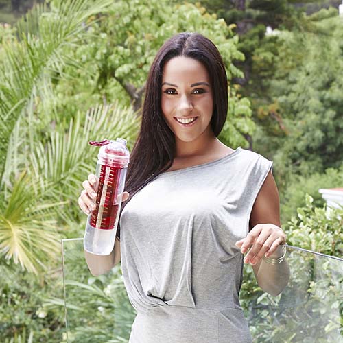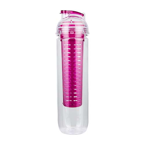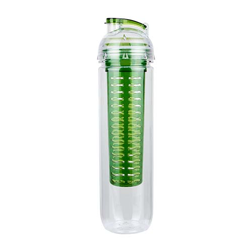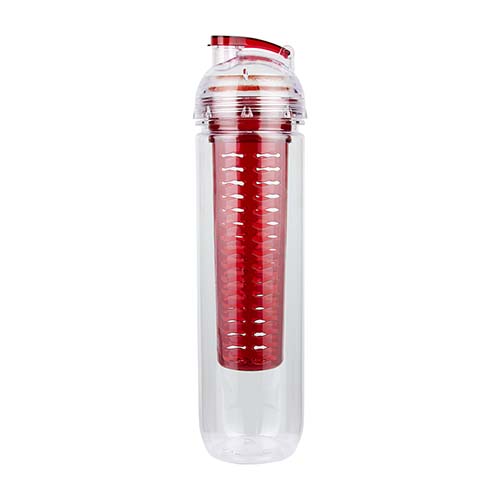 Cilindro con infusionador para frutas o bolsas de té. Tapa con sistema de rosca boquilla y sobre tapa que cierra a presión. Incluye caja individual.