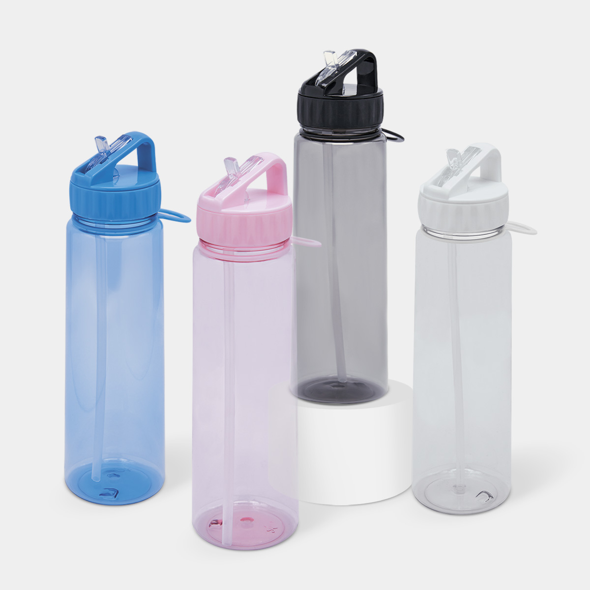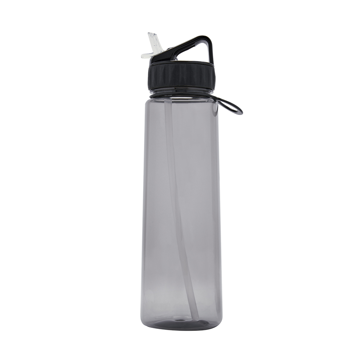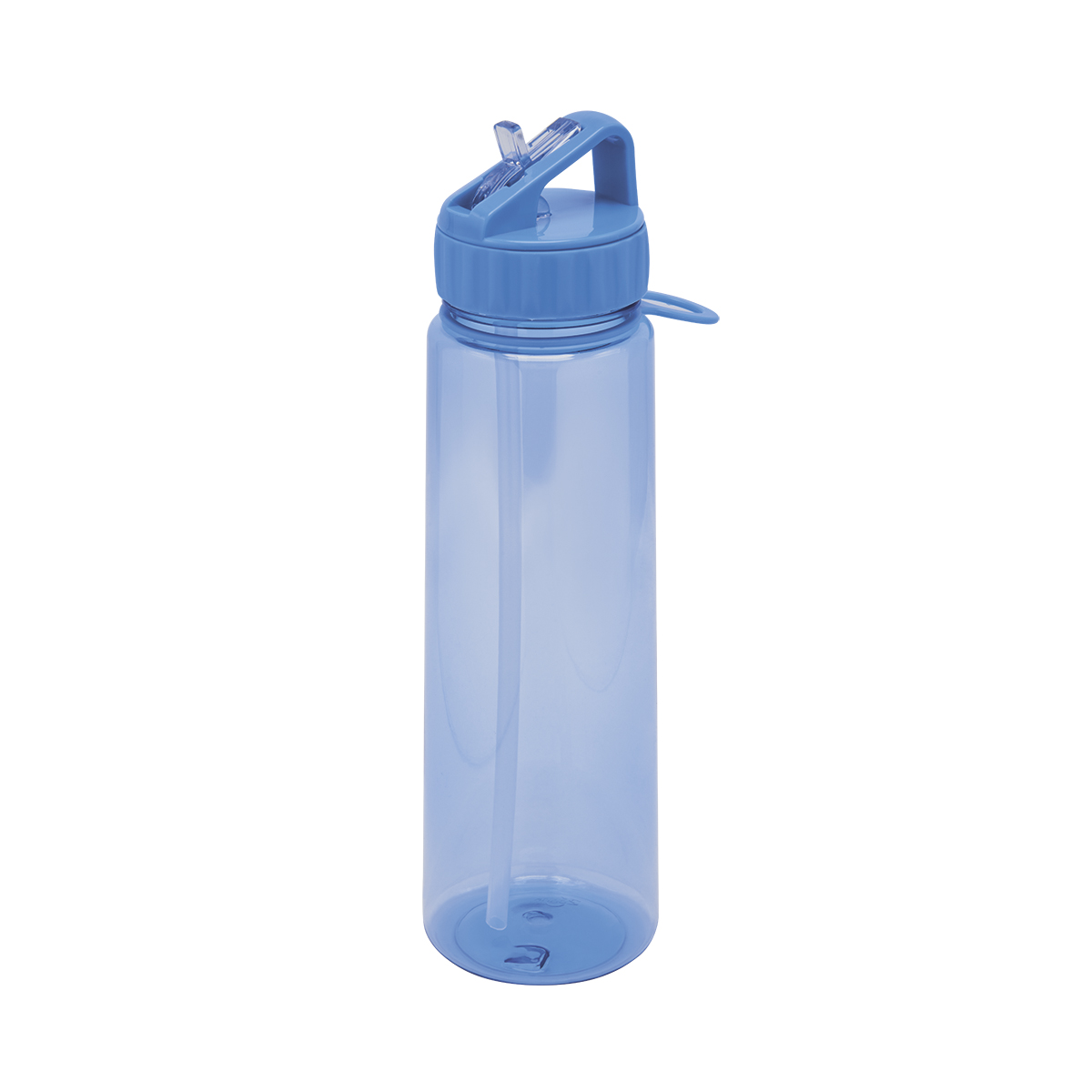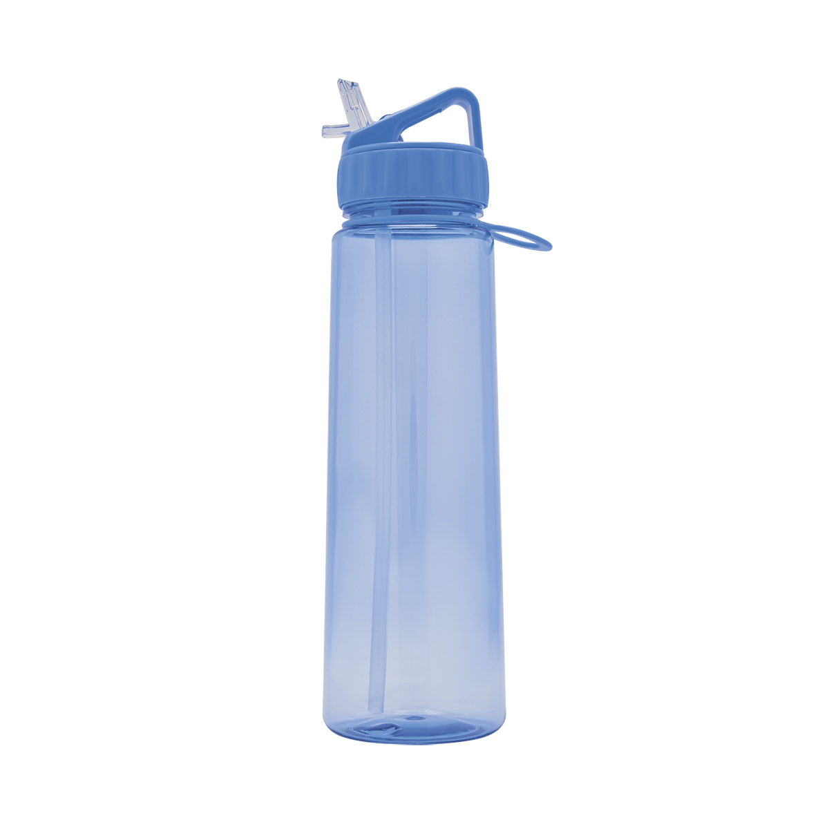 Tapa con cierre de rosca, asa y boquilla plegable para beber. Incluye popote y aro de silicón para colgar toalla, llaves etc. Caja individual incluida.