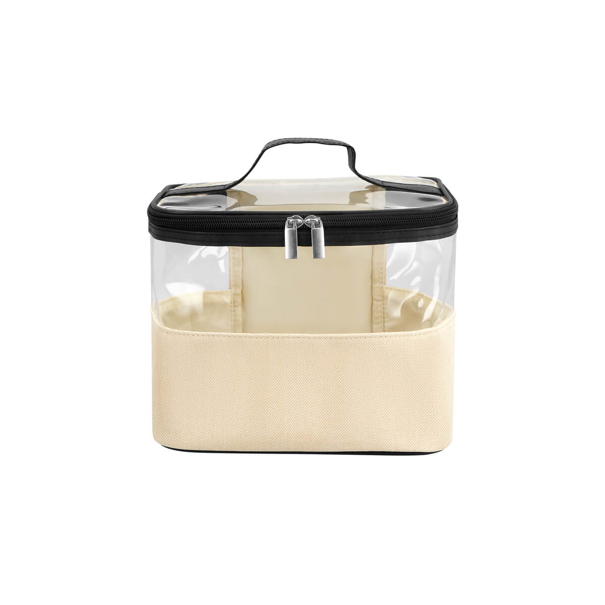 Cosmetiquera ideal para llevar todos tus productos de belleza de manera organizada. Bolsa principal con cierre, con un amplio espacio interior. Ofrece suficiente capacidad para guardar cosméticos, brochas y accesorios indispensables. Su asa de curpiel proporciona un agarre cómodo, lo que facilita su transporte. Base fabricada con yute de alta calidad, lo que garantiza su durabilidad y resistencia al desgaste. Además, su mica transparente en la parte frontal permite ver fácilmente el interior, ahorrando tiempo al buscar tus productos.