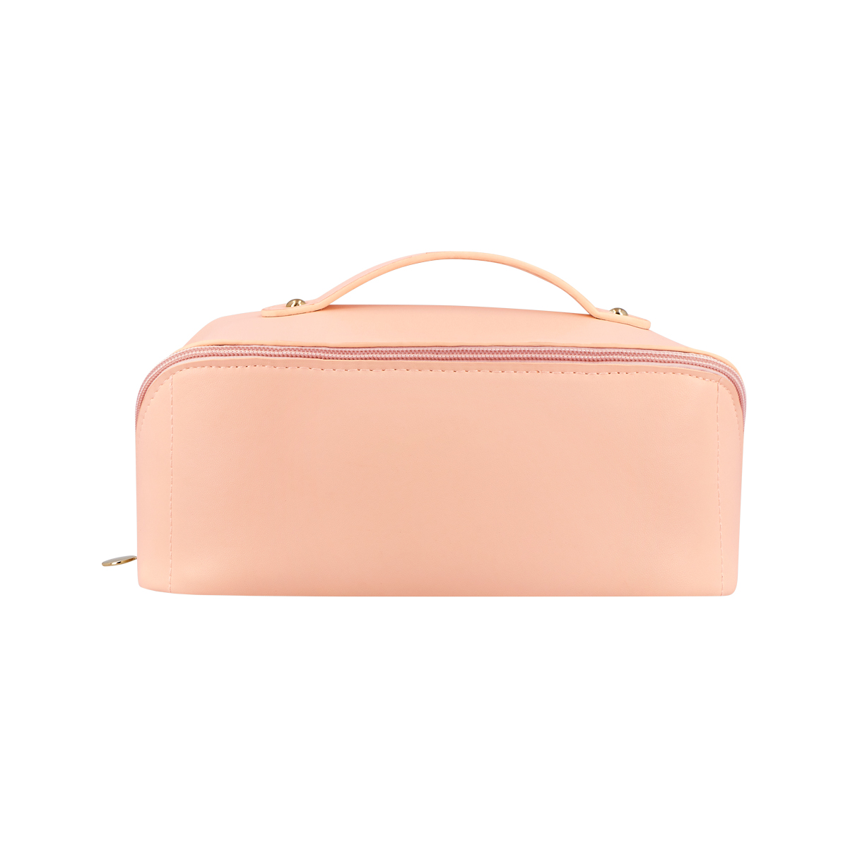 Su elegante diseño en curpiel agrega un toque de sofisticación a tu rutina diaria, su cierre cruzado permite expandir la cosmetiquera al abrir, brindándote un fácil acceso a tus productos. En su interior, encontrarás tres elásticos organizadores que mantienen tus artículos en su lugar, evitando que se mezclen. Además, cuenta con un bolsillo central con cierre, ideal para guardar objetos más pequeños. Incluye un asa del mismo material, lo que facilita su transporte. Podrás llevar tus productos esenciales de belleza de manera ordenada, ya sea en casa o en tus viajes.