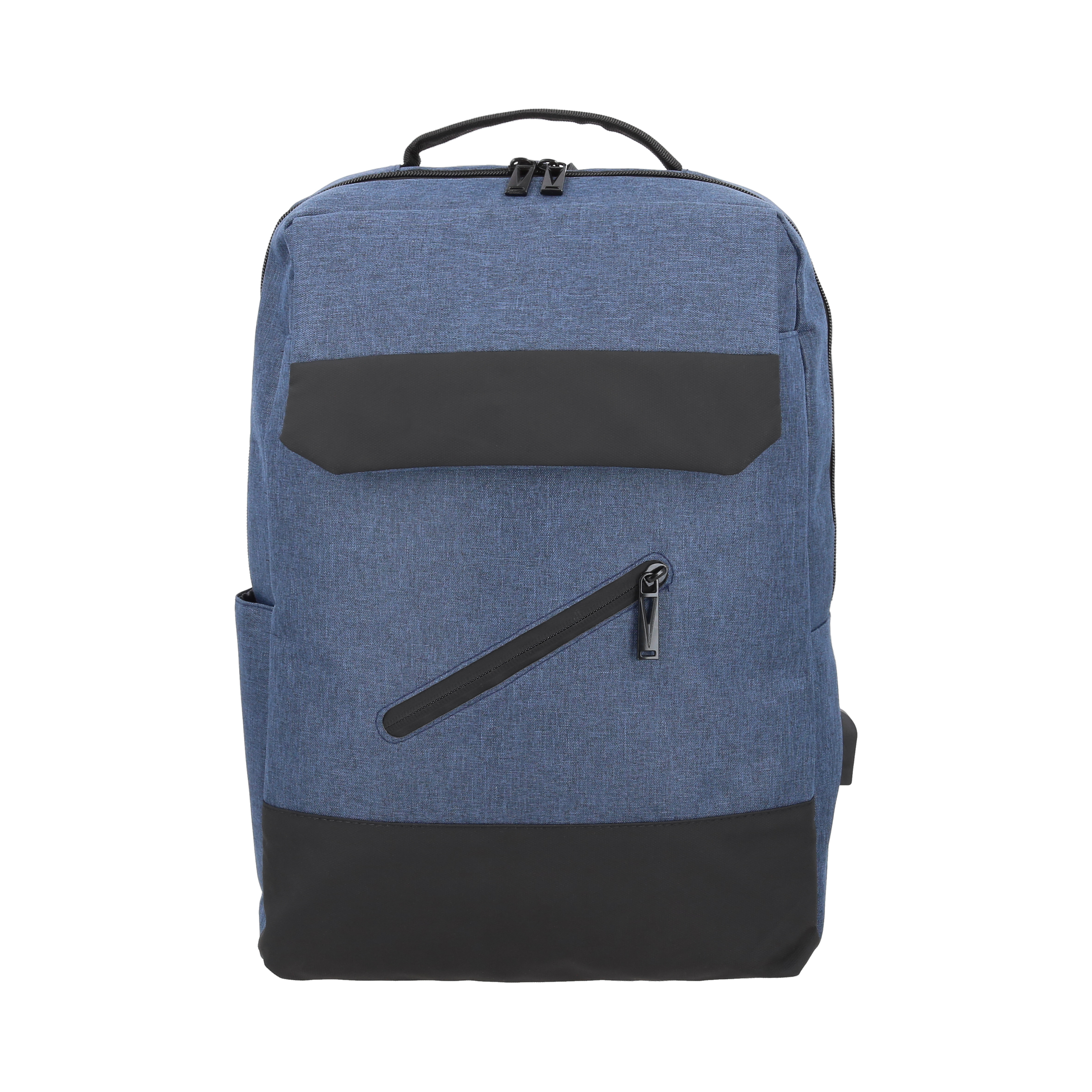 Mochila de 3 compartimentos, compartimento principal con porta laptop de 16″, organizador interno, 1 compartimento lateral y asa.