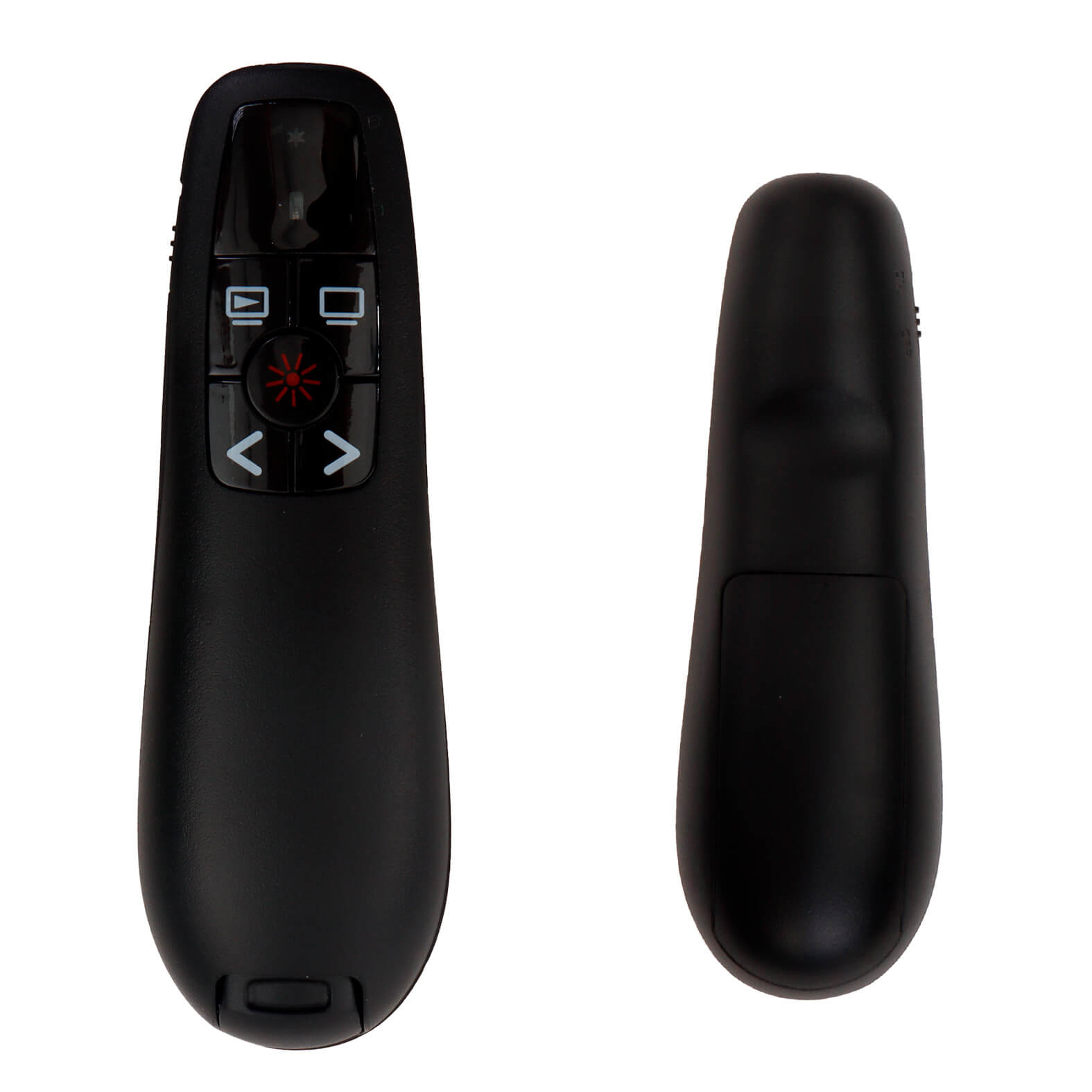 Control inalámbrico para presentaciones con apuntador láser, receptor USB y tipo C, botón de cambio, encendido y apagado.