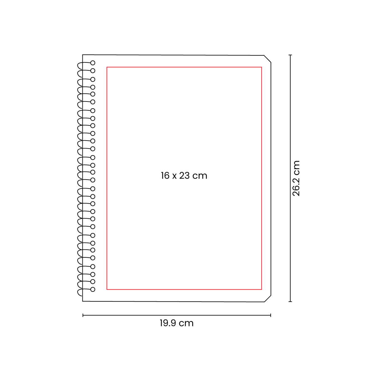 Cuaderno profesional tamaño carta con 70 hojas a rayas y espiral metálico.
