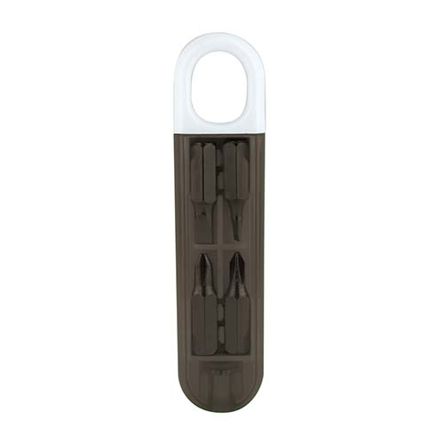 Contiene desarmador con 2 puntas de cruz y 2 puntas planas diferentes e intercambiables.