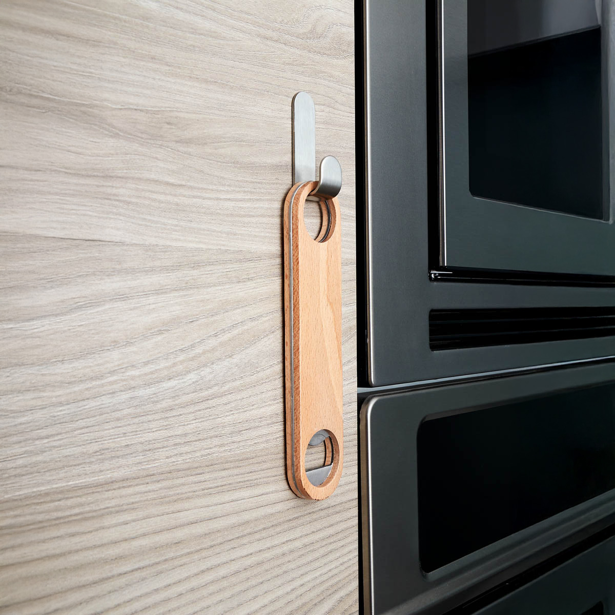 Destapador para botellas. Incluye argolla adicional para que pueda ser enganchado y tenerlo siempre al alcance.