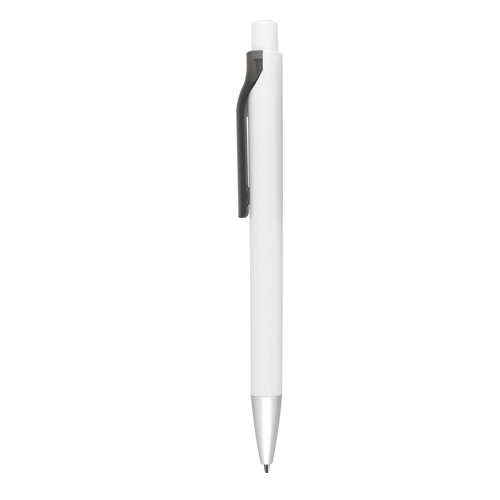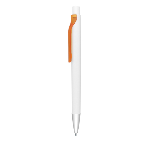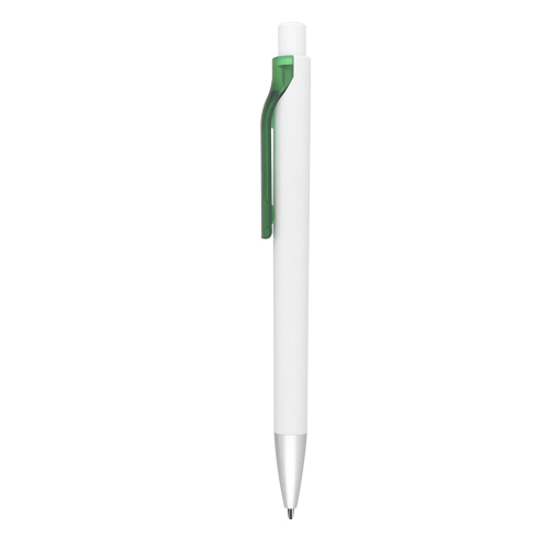 Bolígrafo de plástico con clip traslúcido, punta con detalle de color y mecanismo de click.