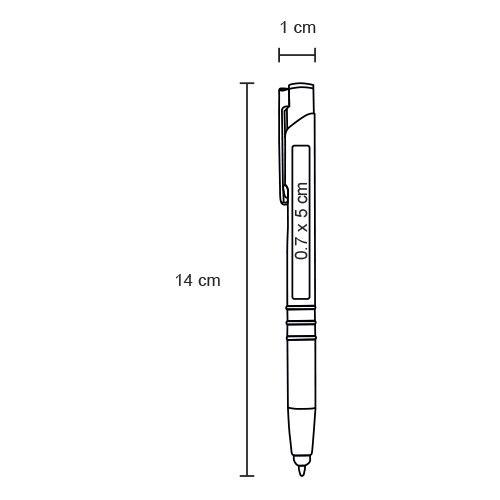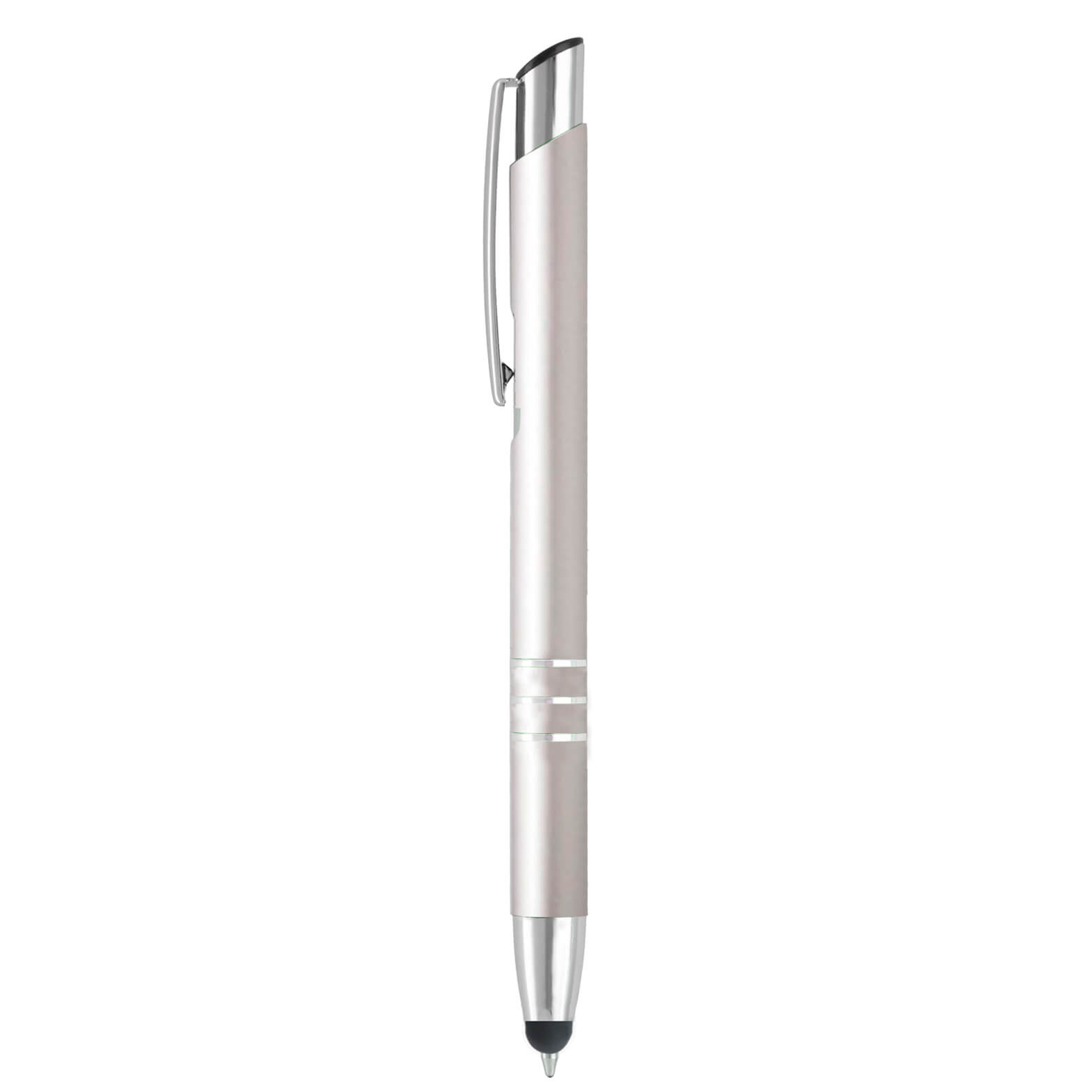 Bolígrafo metálico con goma touch screen en la punta, clip y mecanismo de click.