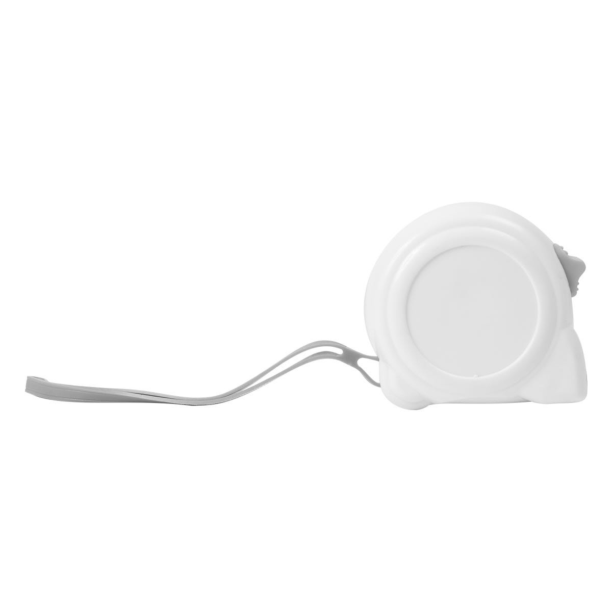 Flexómetro con cinta metálica de 5 m. Incluye correa, clip y seguro.