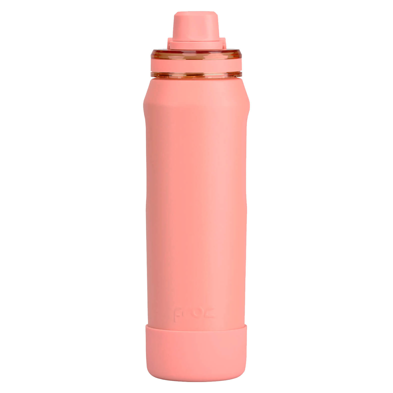Termo con doble pared de acero inoxidable, insulado al vacío con base anti derrapante, tapa de rosca, boquilla y asa.