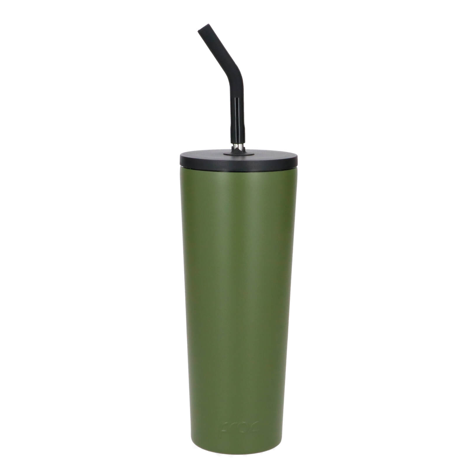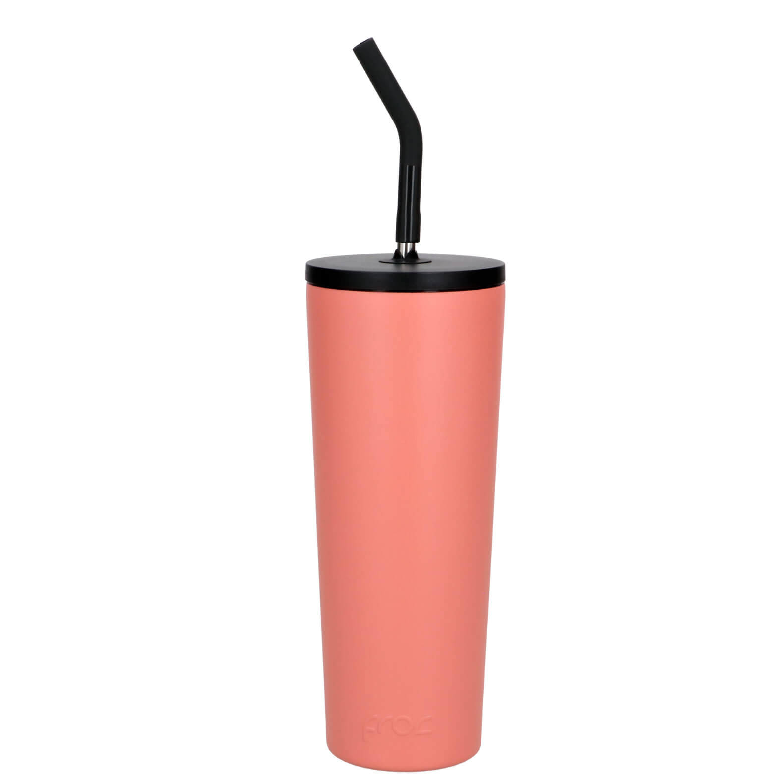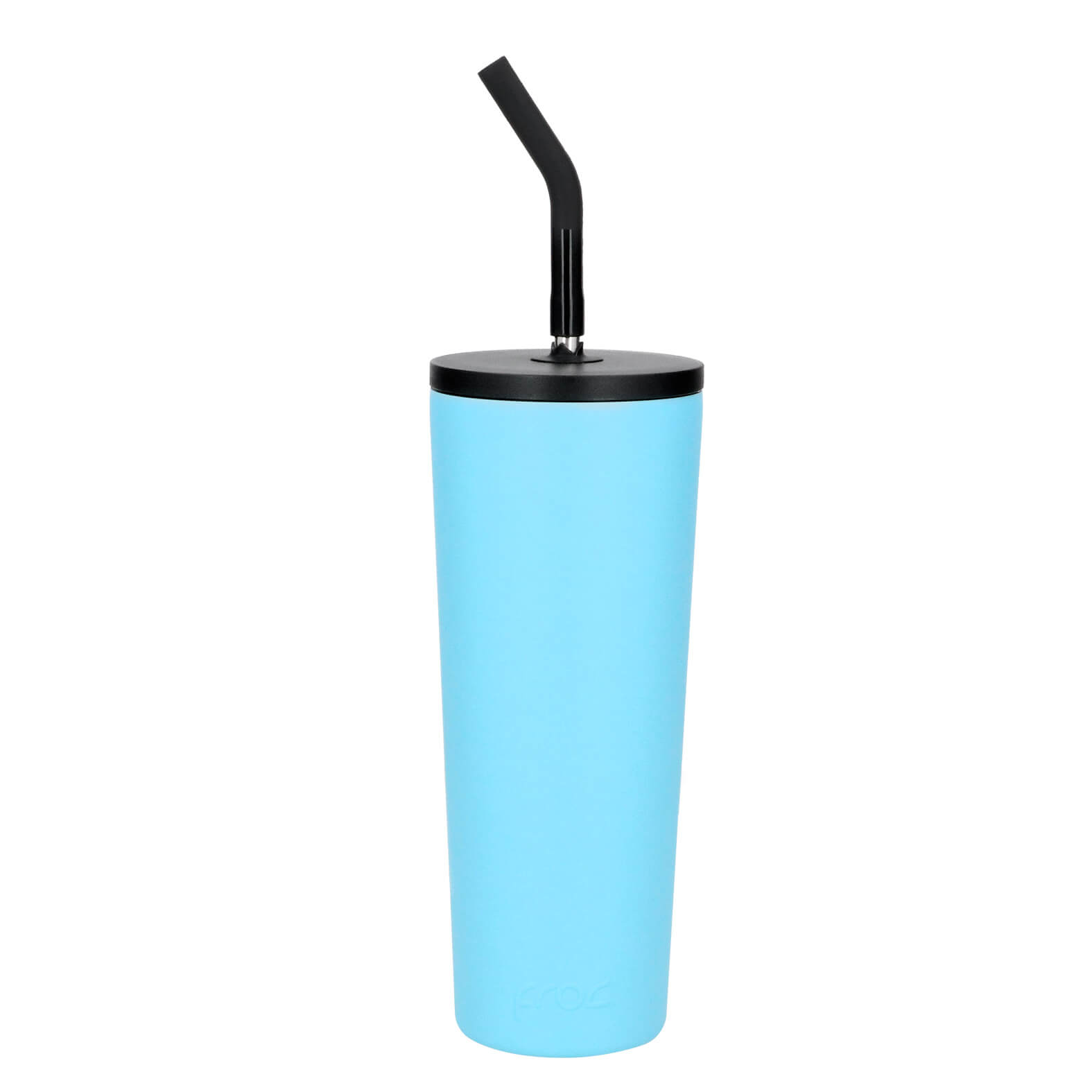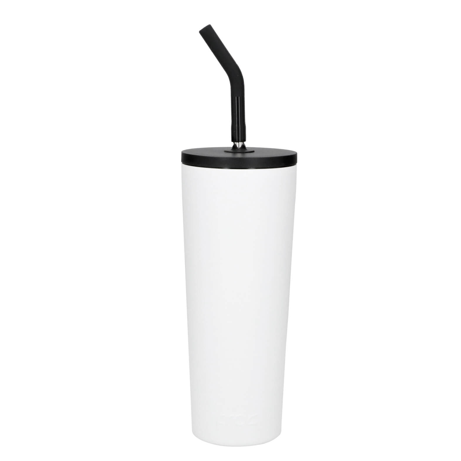 Termo con doble pared de acero inoxidable insulado al vacío, tapa enroscable y popote metalico. (Incluye limpiador para el popote).